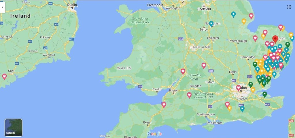 Among these, the relatively local settlements were expected; places such as Colchester, Ipswich, Harwich, Clacton, Wivenhoe… none of these locations struck me as out of the ordinary. However, when I noticed locations such as Boston and Blankney in Lincolnshire, Kirdford in Sussex, West Riding in Yorkshire, and even County Cork, I realised that people were arriving in